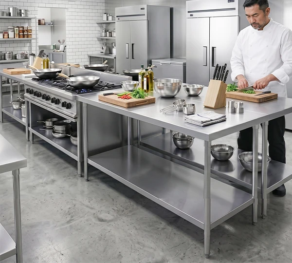ยกระดับธุรกิจของคุณทั้งด้านความสะอาด ภาพลักษณ์ และมาตรฐานการใช้งาน ด้วย โต๊ะสแตนเลส KACHA โครงสร้างแข็งแรง ทนทาน ทำความสะอาดง่าย ทนต่อความชื้น ไร้สนิมกวนใจ 100% ตอบโจทย์การใช้งานทุกระดับ ไม่ว่าจะเป็นครัวเรือน ร้านอาหาร คาเฟ่ ภัตตาคาร โรงแรม โรงงานอาหาร หรือธุรกิจที่ต้องการความเป็นระเบียบและสุขอนามัยสูง