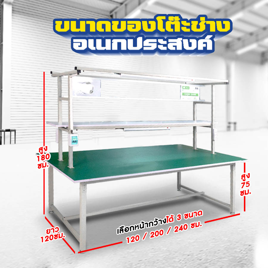 โต๊ะทำงานช่าง แถมไฟแบบ LED ขนาด 28 W ติดให้ถึง 4 ดวง
