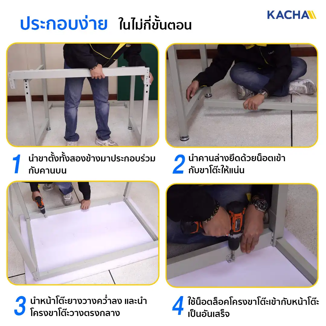 โต๊ะช่างอเนกประสงค์ พร้อมลิ้นชัก ของ KACHA ประกอบง่ายในไม่กี่ขั้นตอน อุปกรณ์ภายในกล่องครบ ทั้งขาโต๊ะ คานบน-ล่าง แผ่นหน้าโต๊ะ และตู้ลิ้นชัก ประกอบเสร็จพร้อมใช้งานทันที!