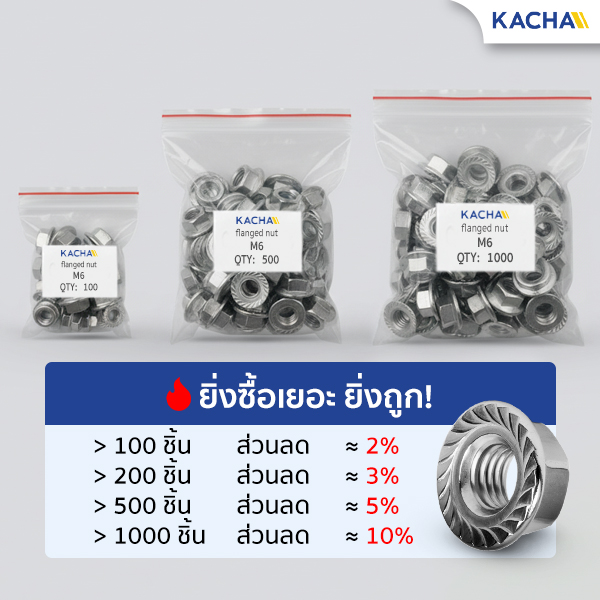 - ประหยัดค่าใช้จ่าย ไม่จำเป็นต้องใช้หรือซื้อแหวนรองเพิ่มเติม