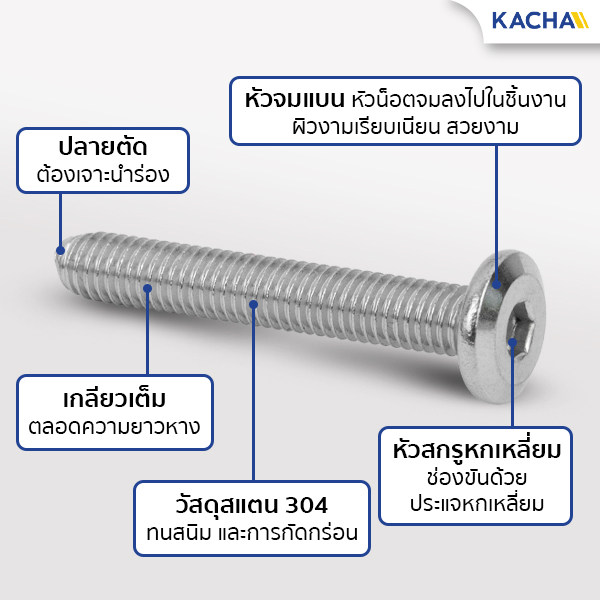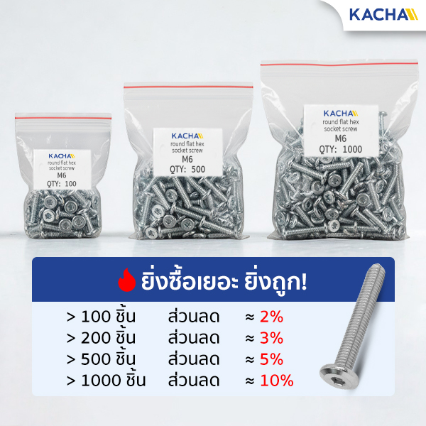 สกรูหัวจมแบน น็อตหัวแบนจม KACHA ขันล็อคแน่น ไม่คลายตัว ทนต่อแรงบิดได้ดี มีขนาดความโตเกลียวน็อตให้เลือกตั้งแต่ M3-M6 มม. สต็อกแน่น พร้อมส่ง!